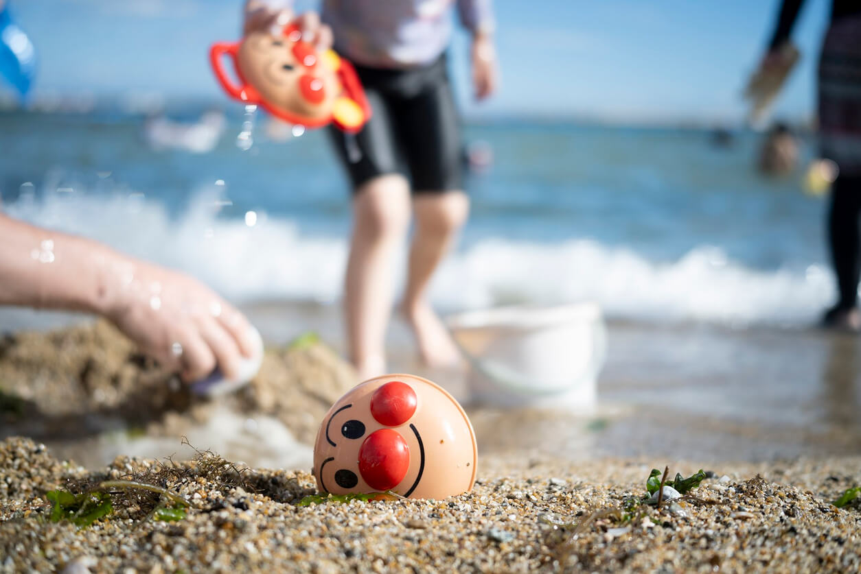 This is my child, whose hobby is collecting seaweed.